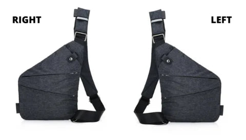 Right-handed type: Designed to wear on the right shoulder, with the bag resting on your left side.